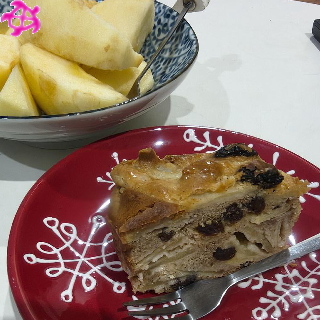 嫁が焼いてくれたアップルケーキを食べながら